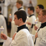 At noon, the Seminarians take a very short walk to the Seminary’s own cemetery on the grounds, where they pray the hour of Sext from the Office of the Dead. Two Fraternity priests are currently buried in the cemetery: Fr. Kenneth Walker and Fr. Nicholas Zolnerowicz. This tradition is not only in keeping with the focus of this day but also serves as a poignant reminder to all of us of the fleetingness of this life and that our destiny lies in eternity.