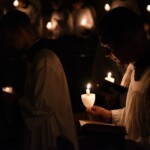 In the early morning of a Saturday during Advent, the Seminary celebrates a candlelit Votive Mass of Our Lady as the sun rises. This year it coincided with the First Saturday of December, and gave a special opportunity for the seminarians to offer this special Mass in reparation to the Immaculate Heart of Our Lady. The candlelit aspect adds a veil of mystery and silence to the Mass, and serves as a reminder to us, who live in the age of electricity, of the ages in the Church when all light came from candles.
