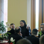 Sr. Steven Larson, OSB has been the OLGS librarian since the seminary was first built out in Nebraska and has done much work in organizing the seminary’s growing library book collection. She has announced her plan to retire at the end of the summer. Priests, seminarians, and faculty members held a dinner in the seminary’s refectory to thank her for her years of service and work in the library. She will be in our prayers as she goes back to her monastery in Oklahoma.